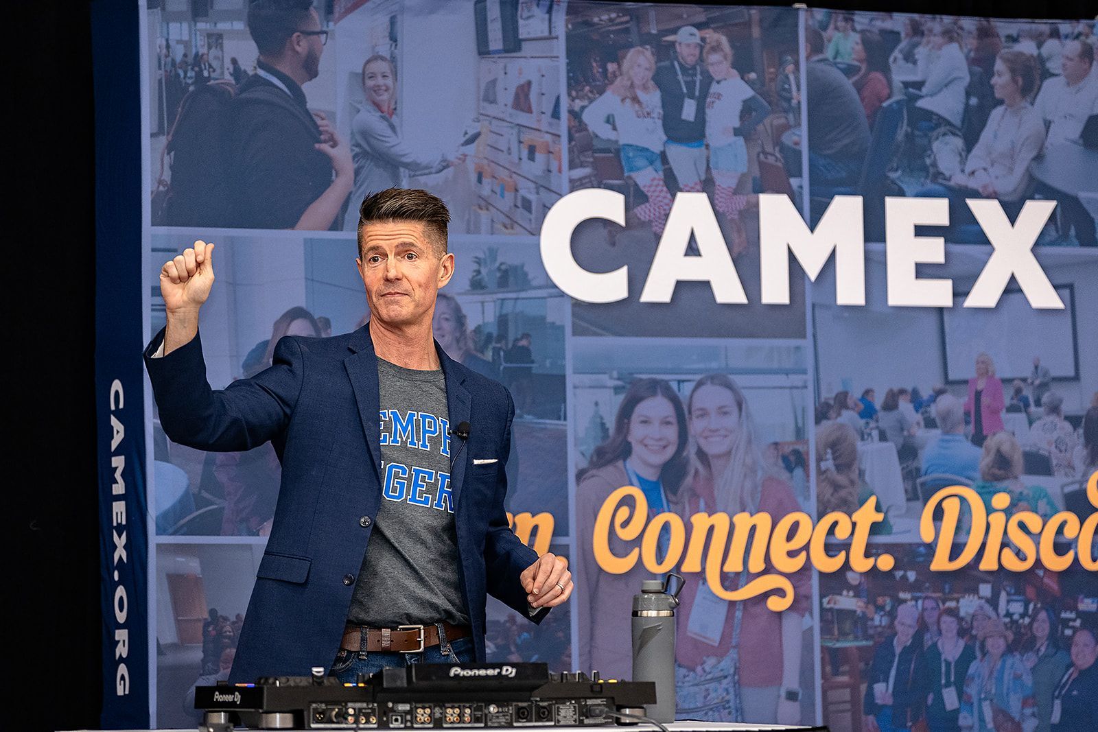 Bracken, an award-winning keynote speaker, thought leader, and consultant focused on emotional intelligence, was the featured speaker at the Sunday afternoon Main Stage event at CAMEX26 in Phoenix, AZ. He’s also an accomplished DJ and sprinkled in dance music throughout the presentation to get his points across.